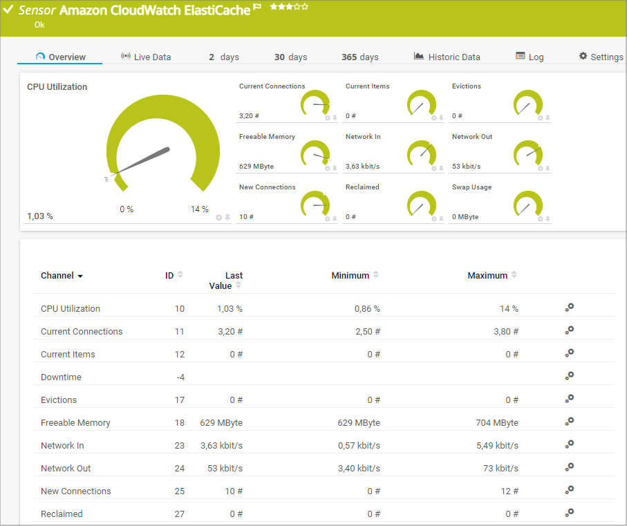 PRTG Manual: Amazon CloudWatch ElastiCache Sensor