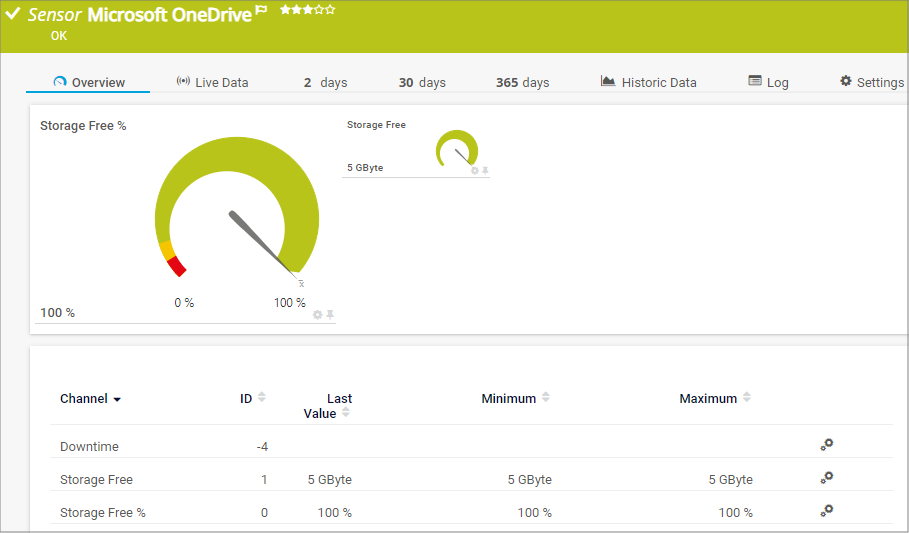 PRTG Manual: Microsoft OneDrive Sensor
