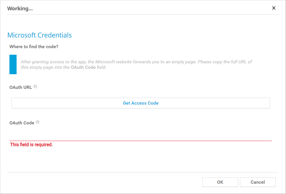 PRTG requires OAuth2 authorization before you can add this sensor. Provide the required credentials in the dialog box that appears.
