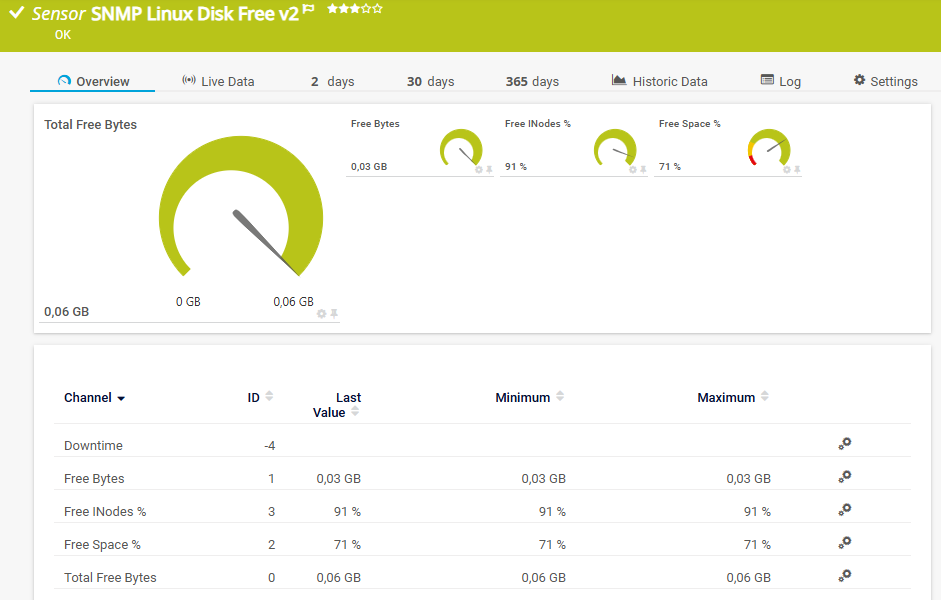 PRTG Manual: SNMP Linux Disk Free v2 Sensor